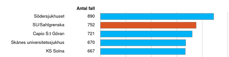 Sveriges 5 största sjukhus sett till antal fall bröstcancer 2024